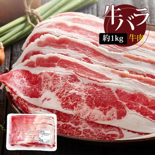 [牛肉] 牛外バラスライス 牛バラ しゃぶしゃぶ / 約1kg 牛育 牛三枚肉 (冷凍)