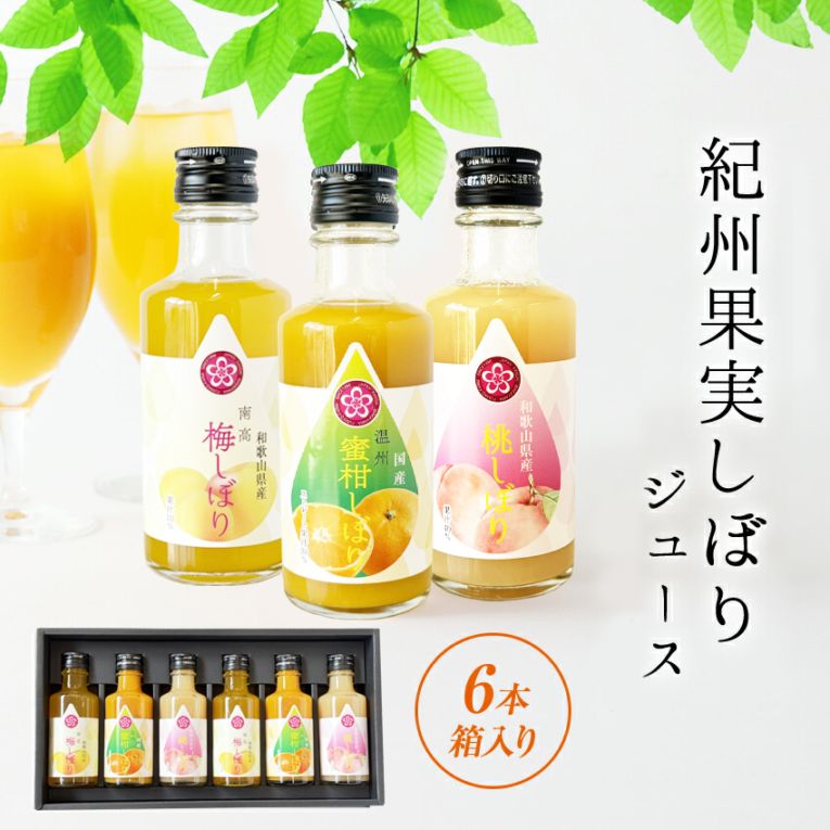 ★5%OFFクーポン配布中★ ギフト プレゼント 果実ジュース 紀州果実しぼりジュース 瓶入6本 (みかん、完熟南高梅、桃)送料無...
