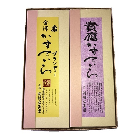 別所文玉堂「貴腐かすていら(ブランデー入)・栗かすていら(ブランデー入)」(ロング2本セット)