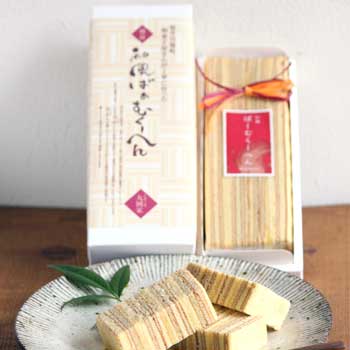 お菓子処 丸岡家:四角い形が特徴「和風ばーむくーへん」和三盆糖使用の和テイスト