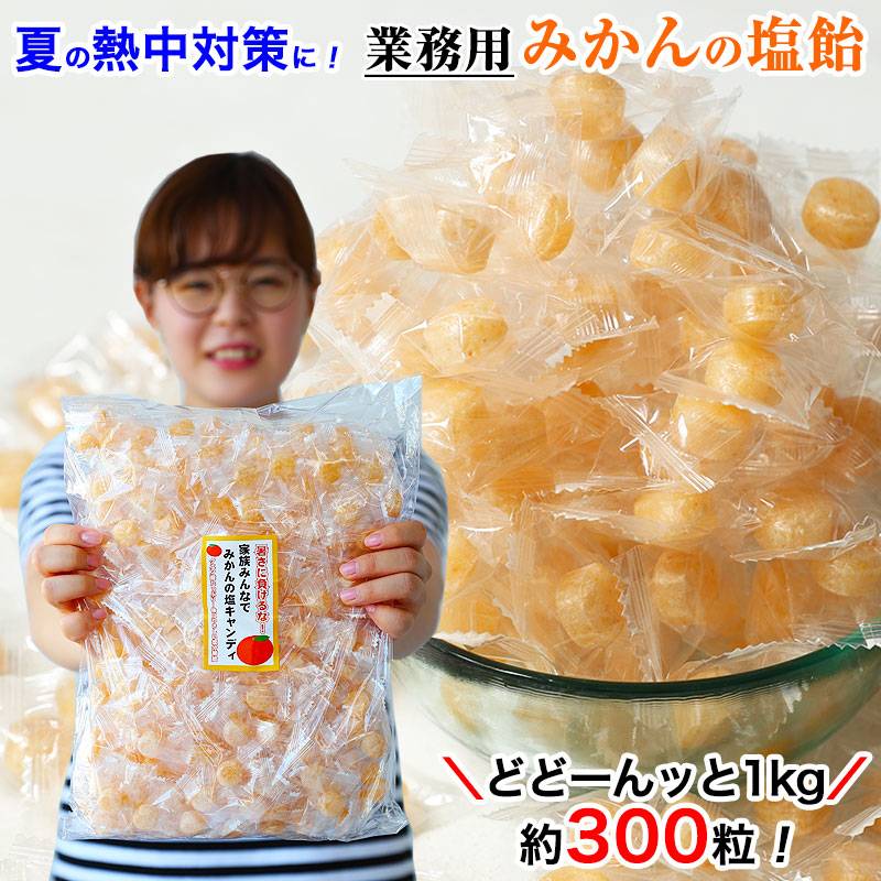 熱中対策・夏バテ対策に効果抜群!熱中飴和歌山のみかん塩飴!お得な業務用大袋1kg入(1粒4g 約300粒)【3袋で送料無料】