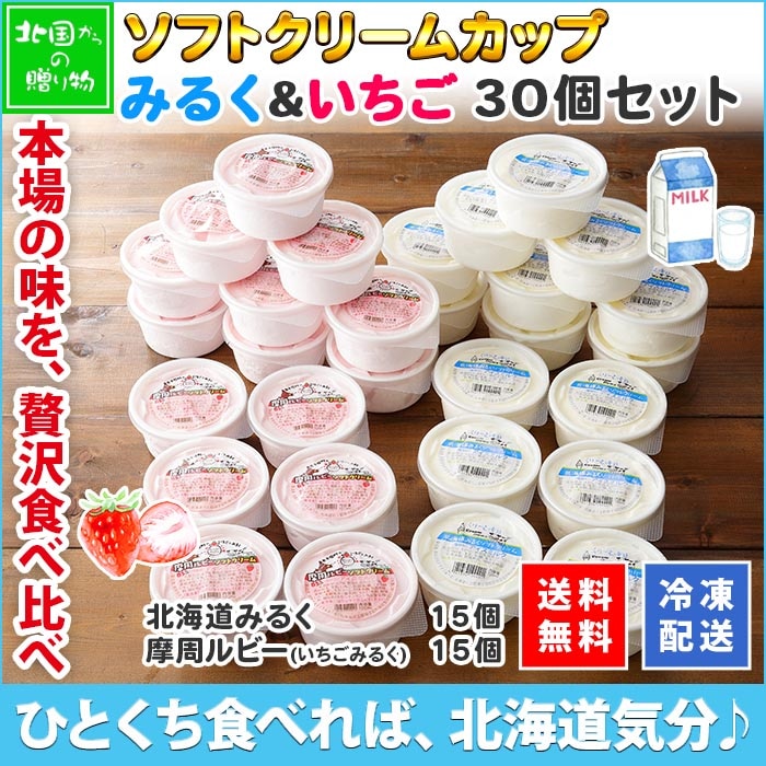 北海道 ソフトクリーム くりーむ童話 てづくり ミルク いちご 2種 みるく 苺 イチゴ アイス 30個セット