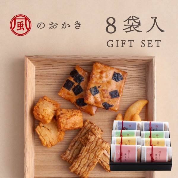 風のおかき 8袋入ギフト | 彼岸 お彼岸 明太子 柚子 サラダ 醤油 おかき あられ 米菓 送料無料【1】 宅急便発送 Agif...