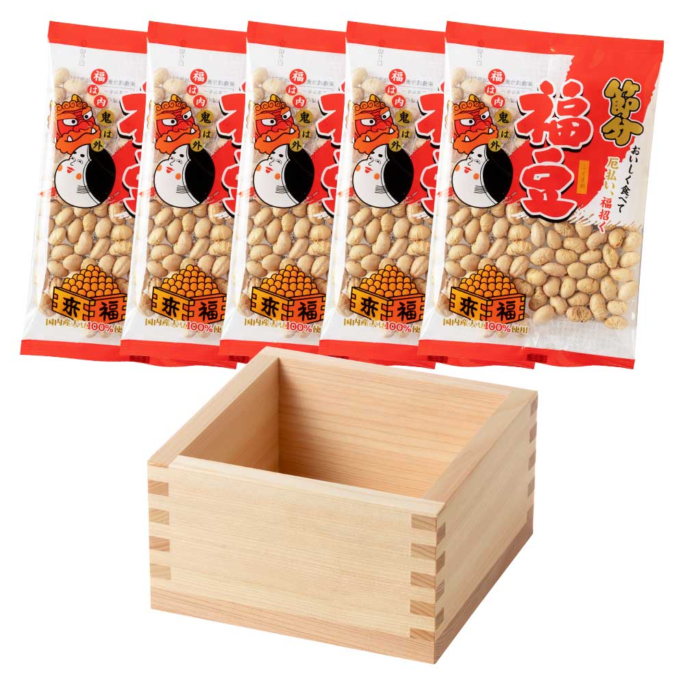 節分豆まきセット 五合枡と福豆(賞味期限:2026年5月) ヒノキ枡に豆を入れてすぐに使えます