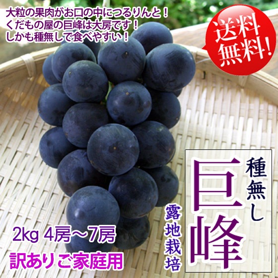 種無し巨峰 【訳あり】 2kg 4-7房 粒の大小・キズ・サビ 送料無料