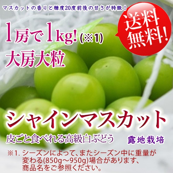 シャインマスカット 限定 1房 850g〜950g 大粒大房 送料無料