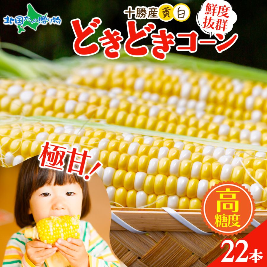 北海道 十勝産 どきどきコーン 22本 黄白 とうもろこし 甘い バイカラー スイートコーン おおくま お中元 敬老の日 北海道 ...