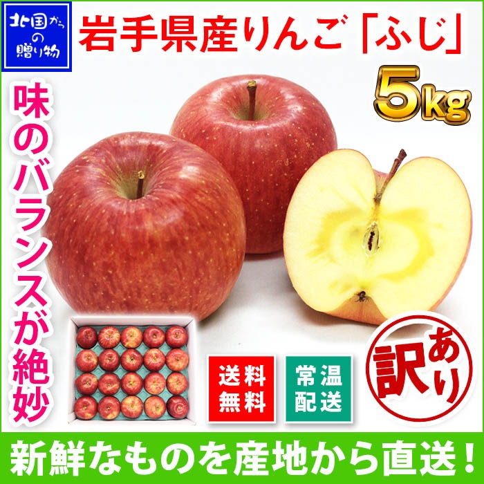 岩手県産 訳あり ふじ りんご 18-20玉 計5kg前後 送料無料 林檎 リンゴ 果物 家庭用 自家用 ※日時指定不可