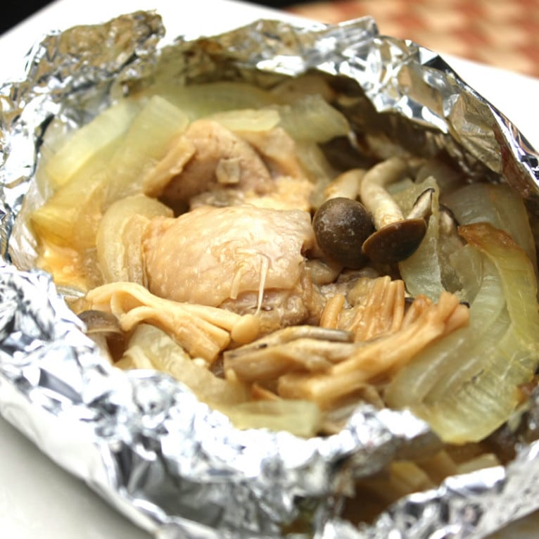化学調味料無添加!【電子レンジで温めるだけ】 鶏ときのこのホイル焼き (きのこと玉ねぎを鶏肉と一緒にたっぷりとホイルに包み込んで、...