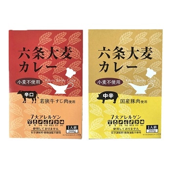大麦倶楽部「レトルト大麦カレー 家族セット(中辛・辛口 各2個)」 福井県産六条大麦使用