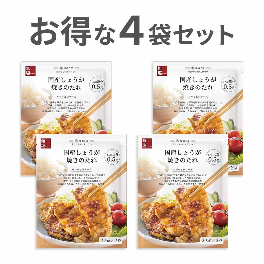 お得な4個セット 塩ぬき屋 減塩 国産しょうが焼きのたれ (55g×2袋)×4個セット (無添加)