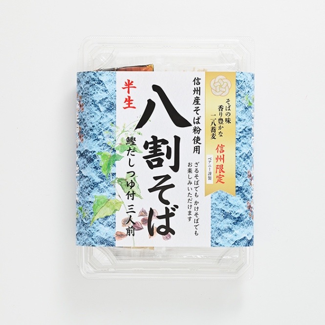 信州産そば粉使用 八割そばPBパック 半生つゆ付3人前
