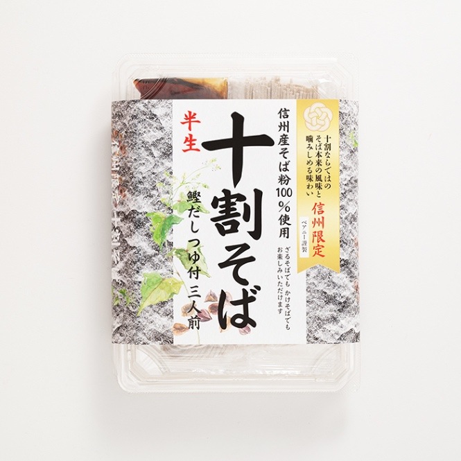 信州産そば粉100%使用 十割そばPBパック 半生つゆ付3人前