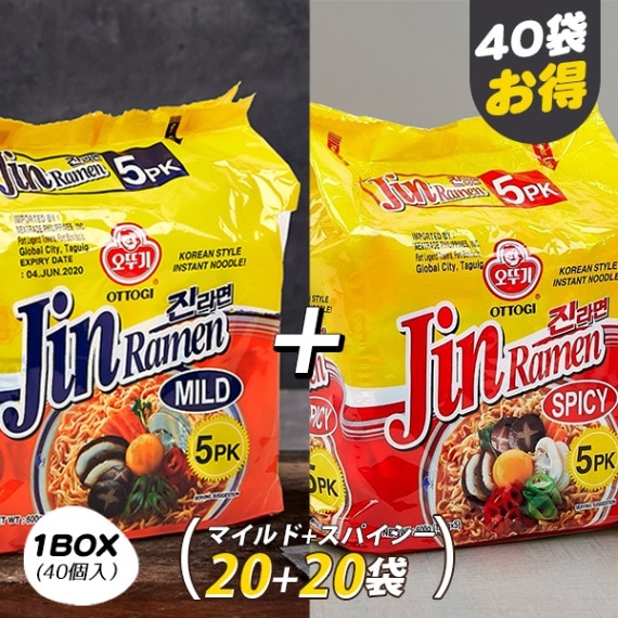 [オットギ] ジンラーメン マイルド味20袋 + スパイシ味20袋 / BOX(40個入り) 箱売り 韓国ラーメン インスタントラ...