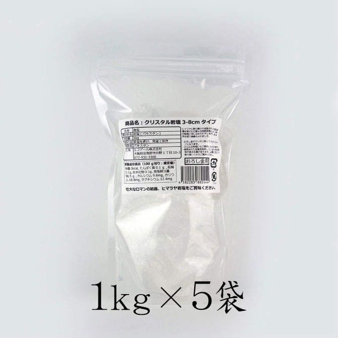 食用・クリスタル岩塩3cm~8cm 5kg(1kg×5袋)