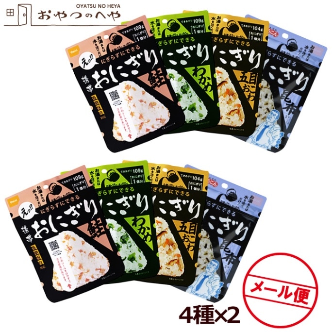 【送料無料】尾西食品 携帯おにぎり 4種×2個 計8個 五目おこわ わかめ 鮭 昆布 メール便(代引き不可) アルファ米 防災 非...