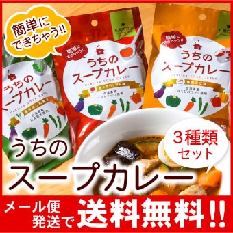 【メール便♪送料無料】札幌の食卓 うちのスープカレー(あっさりトマト 昆布だし和風 濃厚エビ)各1袋(2食入)×3種類セット【代引...