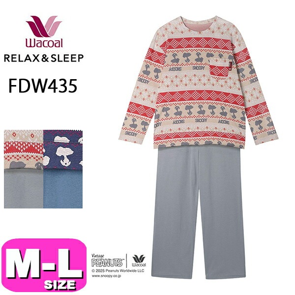 ワコール wacoal リラックス&スリープ FDW435 PEANUTS スヌーピー パジャマ ルームウェア セットアップ 長袖...