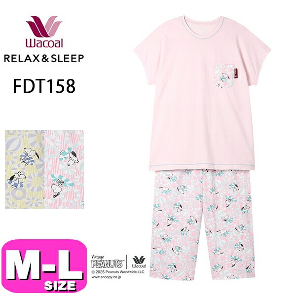 ワコール wacoal リラックス&スリープ FDT253 PEANUTS スヌーピー パジャマ ルームウェア 6分袖 9分丈 か...
