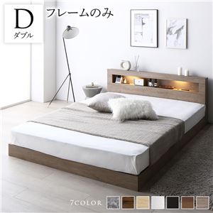 ベッド ダブル ベッドフレームのみ グレージュ 低床 すのこ 照明付 宮付 棚付 コンセント付 ローベッド送料無料