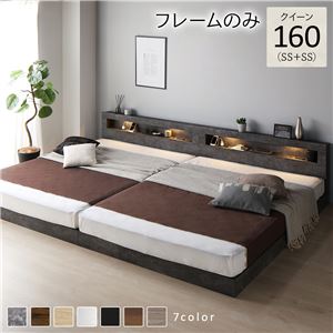 ベッド クイーン 160(SS+SS) ベッドフレームのみ ストーングレー 連結 低床 照明 棚付 宮付 コンセント すのこ送料無...