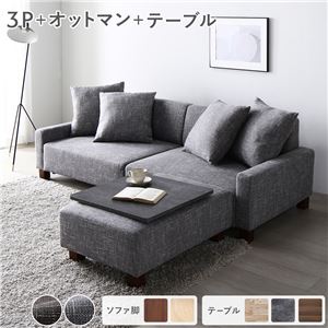 Office168厳選ソファセット ビッグカウチ 〔 3人掛け アッシュグレー 脚:ブラウン オットマン付 テーブルトレイ ブラウ...