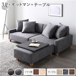 Office168ソファセット ビッグカウチ 〔 3人掛け アッシュグレー 脚:ブラウン オットマン付 テーブルトレイ ストーン ...