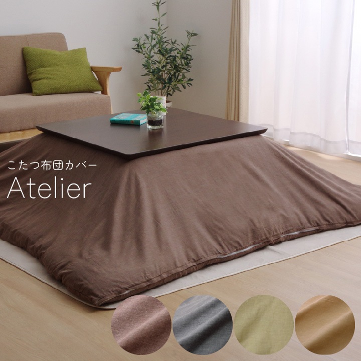 こたつ布団カバー アトリエ 洗える 正方形 長方 無地 シンプル