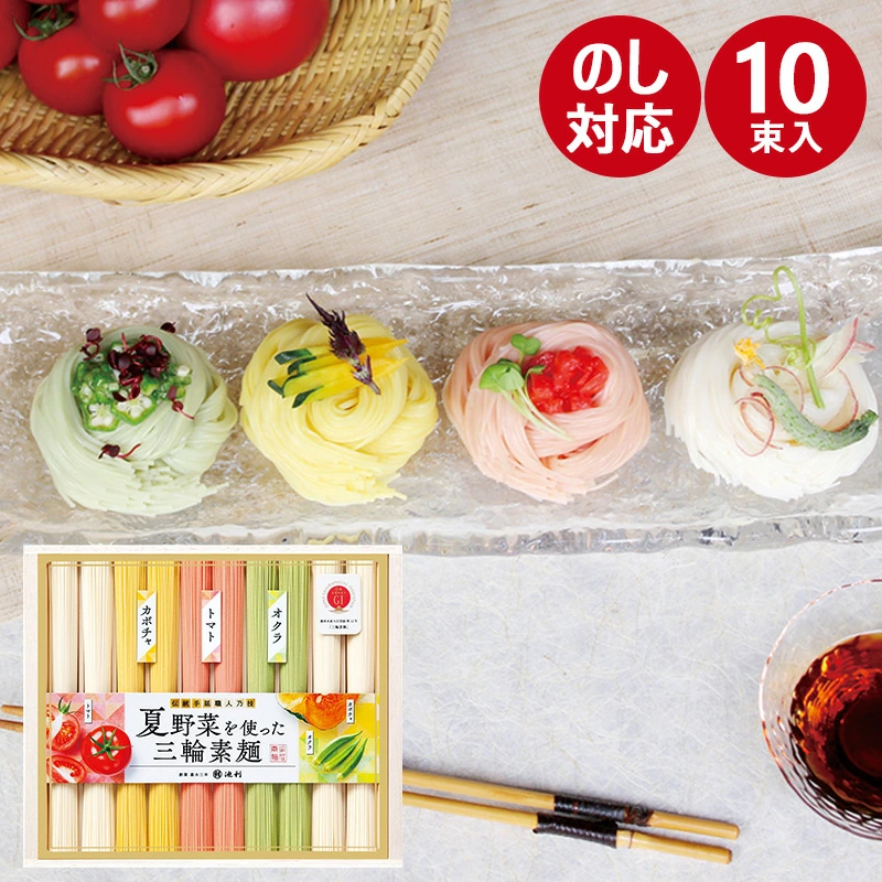 池利 三輪素麺 NY-30A|夏野菜を使ったカラフルそうめん・国産木箱入り高級ギフト【トマト・オクラ・カボチャ】【国産】【長期保存...