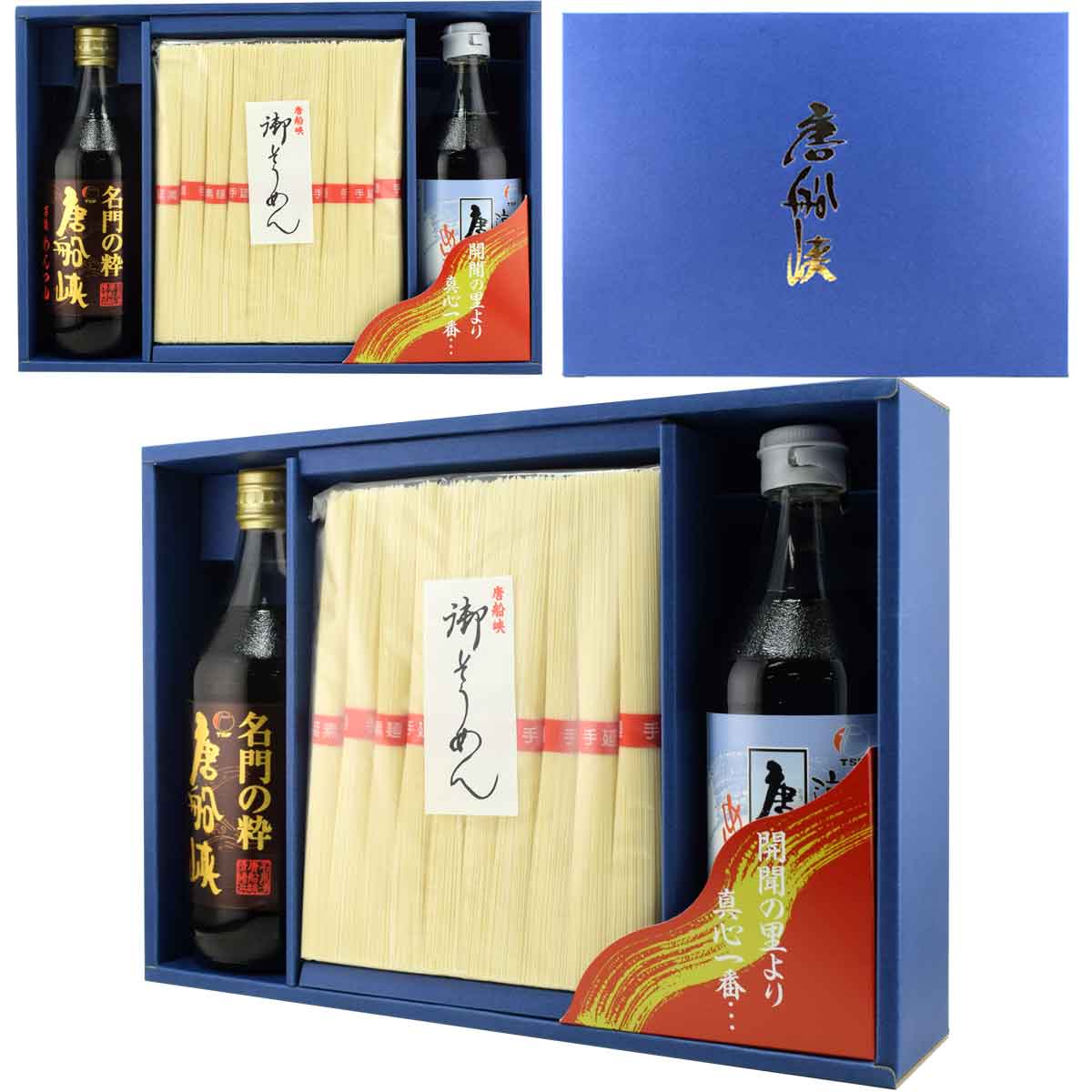[めんつゆギフト]唐船峡 名門の粋 500ml瓶2本&手延べそうめん50g×10束