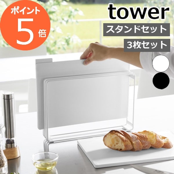 [ 食洗機対応 抗菌まな板3枚セット タワー ]山崎実業 tower まな板 3枚 スタンド付き 滑り止め まな板立て まな板スタ...