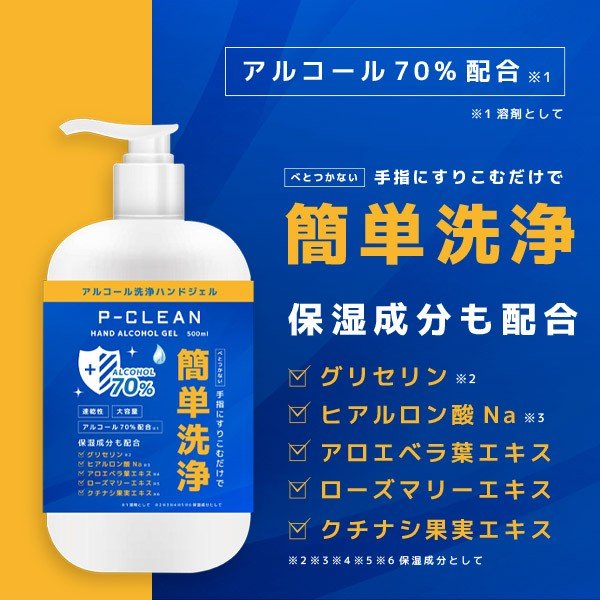 【即納】 アルコール 70% Pクリーン ハンドジェル 500ml アルコール消毒液 アルコールジェル アルコール消毒