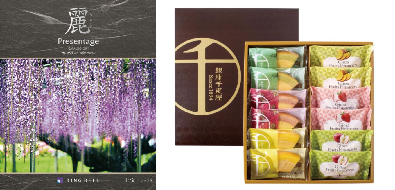 【お香典返し専用のおすすめ推奨定番品】カタログギフト 麗 七宝(しっぽう)+銀座千疋屋 銀座フルーツガトー