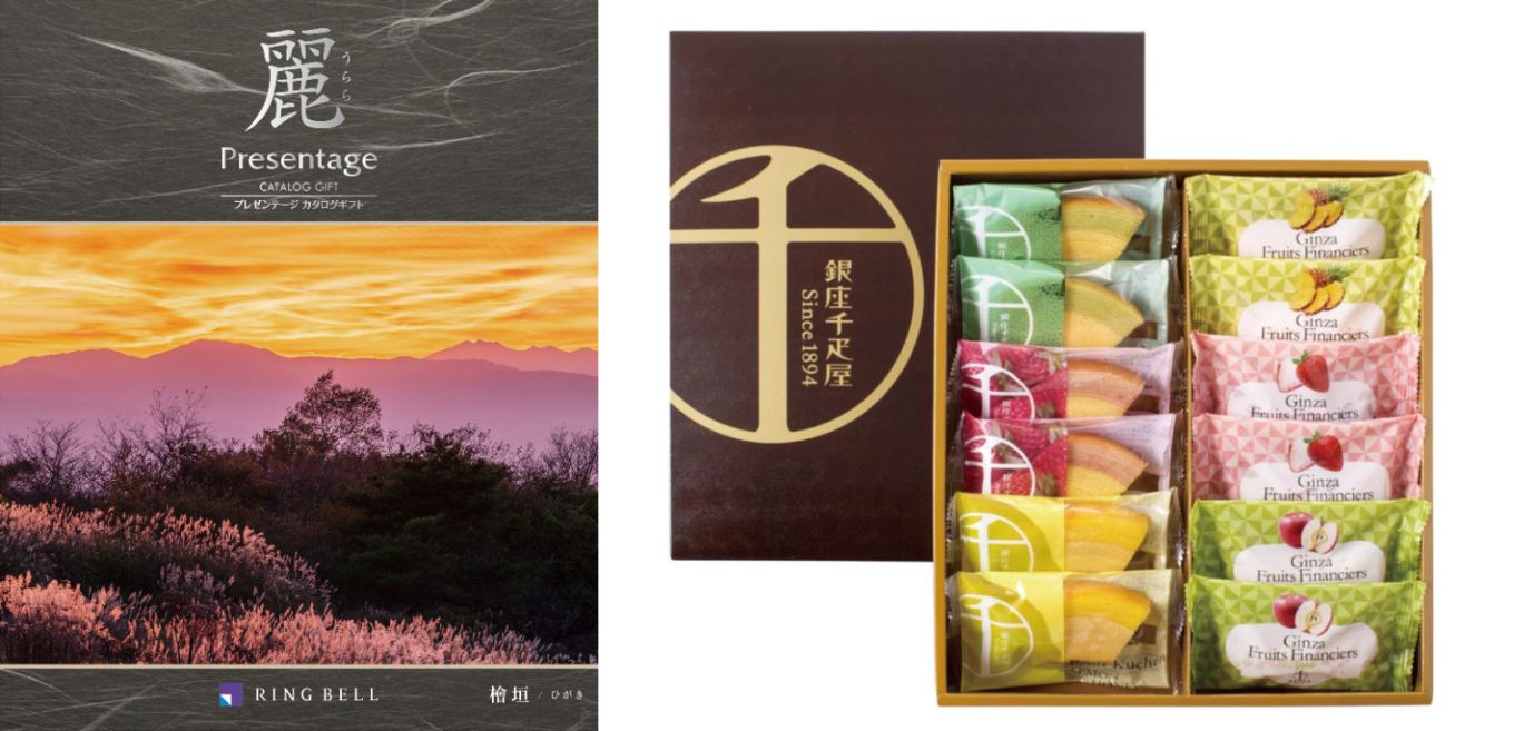 【お香典返し専用のおすすめ推奨定番品】カタログギフト 麗 檜垣(ひがき)+銀座千疋屋 銀座フルーツガトー