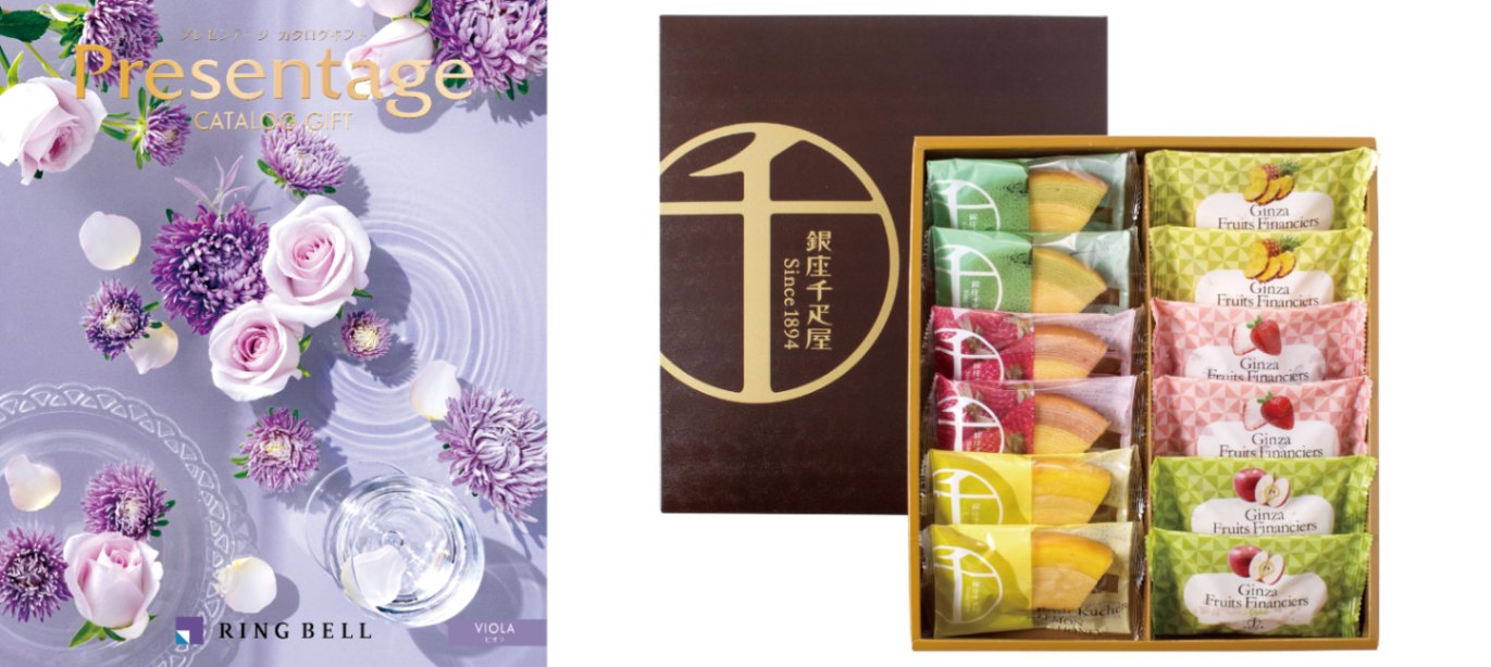 【お香典返し専用のおすすめ推奨定番品】カタログギフト プレゼンテージ(ビオラ)+銀座千疋屋 銀座フルーツガトー