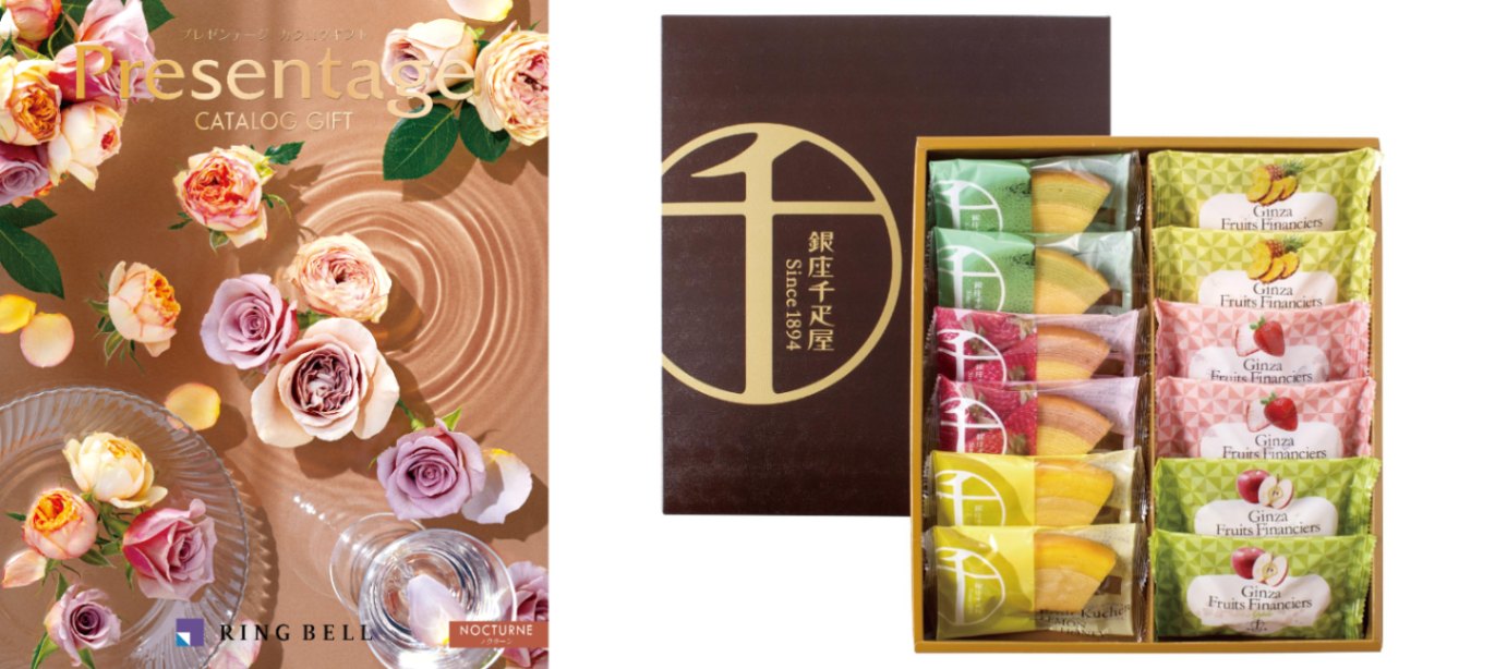 【お香典返し専用のおすすめ推奨定番品】カタログギフト プレゼンテージ(ノクターン)+銀座千疋屋 銀座フルーツガトー