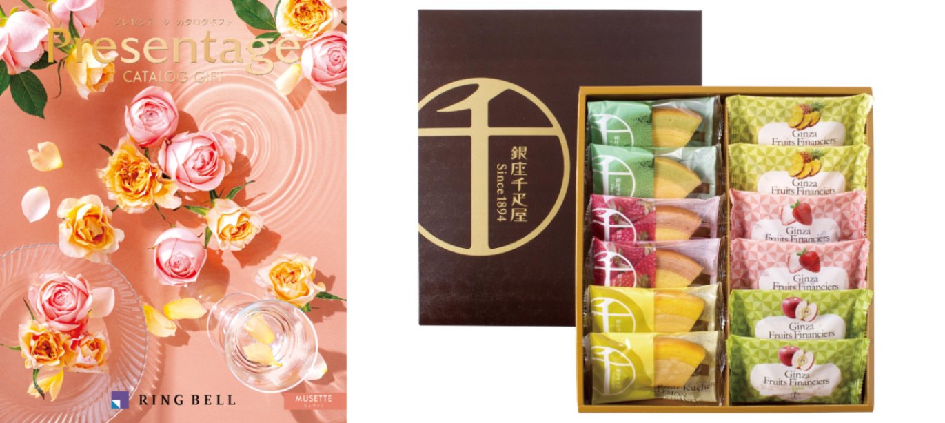 【お香典返し専用のおすすめ推奨定番品】カタログギフト プレゼンテージ(ミュゼット)+銀座千疋屋 銀座フルーツガトー