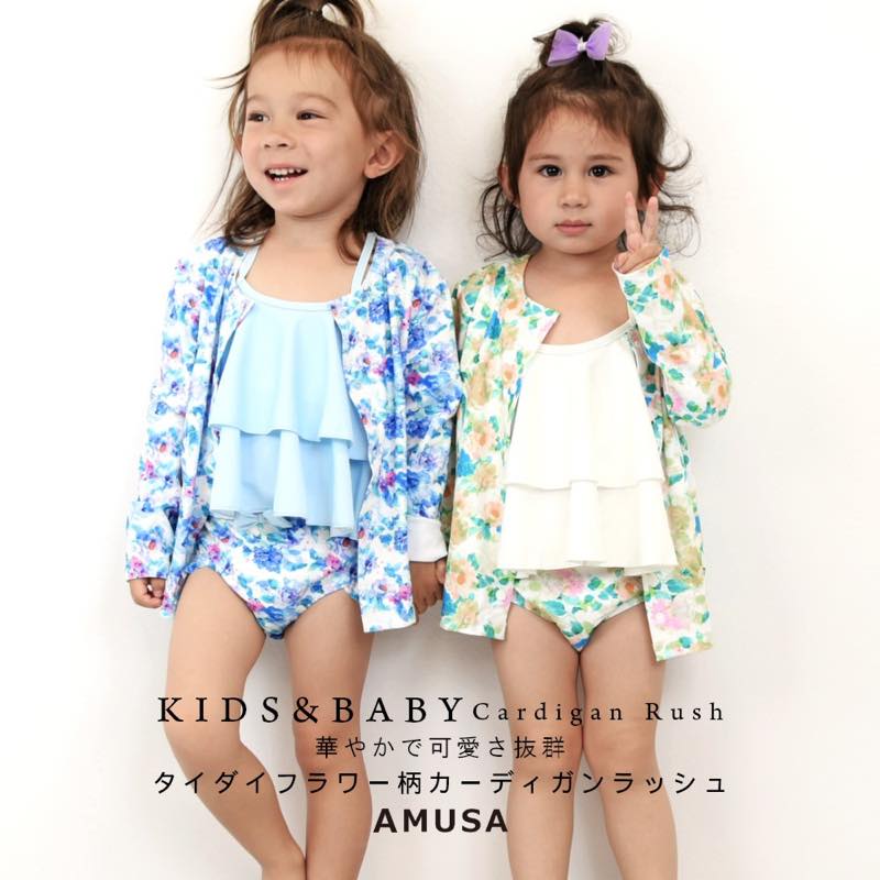 【宅配送料無料】カーディガン・ラッシュガード ぼかしタイダイフラワー柄 ベビー水着 キッズ 赤ちゃん 子供 女子 UVカット フラ...