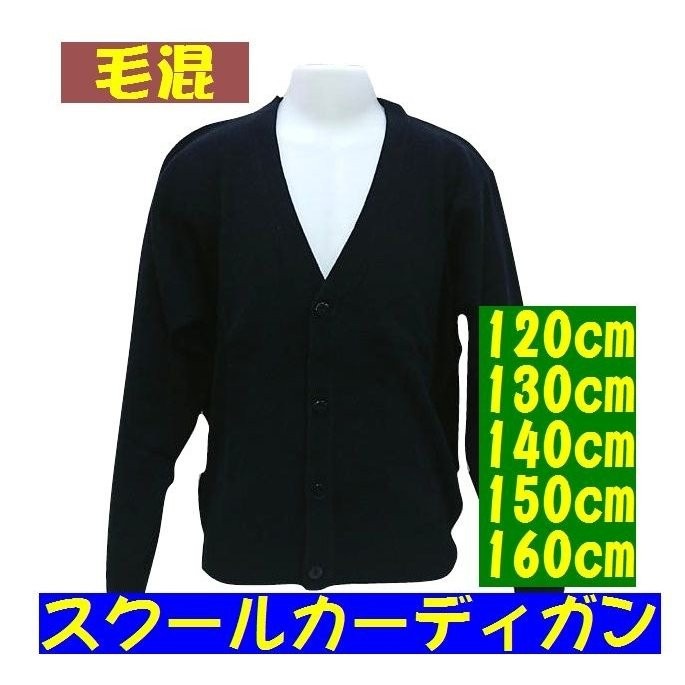スクール ニットカーディガン 毛混 ウール混 子供 無地 紺色 キッズ ジュニア 男の子 女の子 小学生 7547