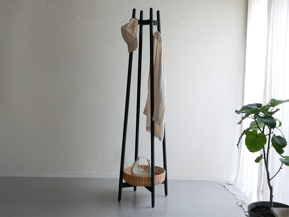【NOWHERE LIKE HOME】ラタンバスケット付きコートハンガー スリム(幅47) ブラック