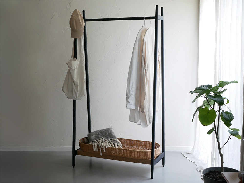 【NOWHERE LIKE HOME】ラタンバスケット付きコートハンガー ワイド(幅90) ブラック