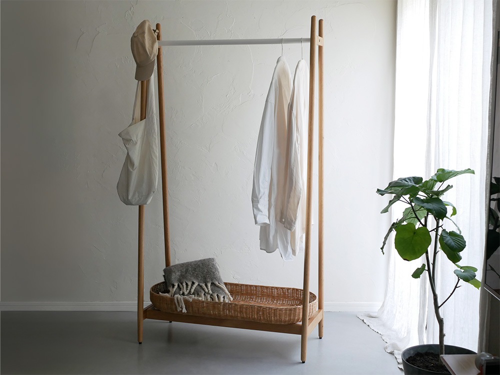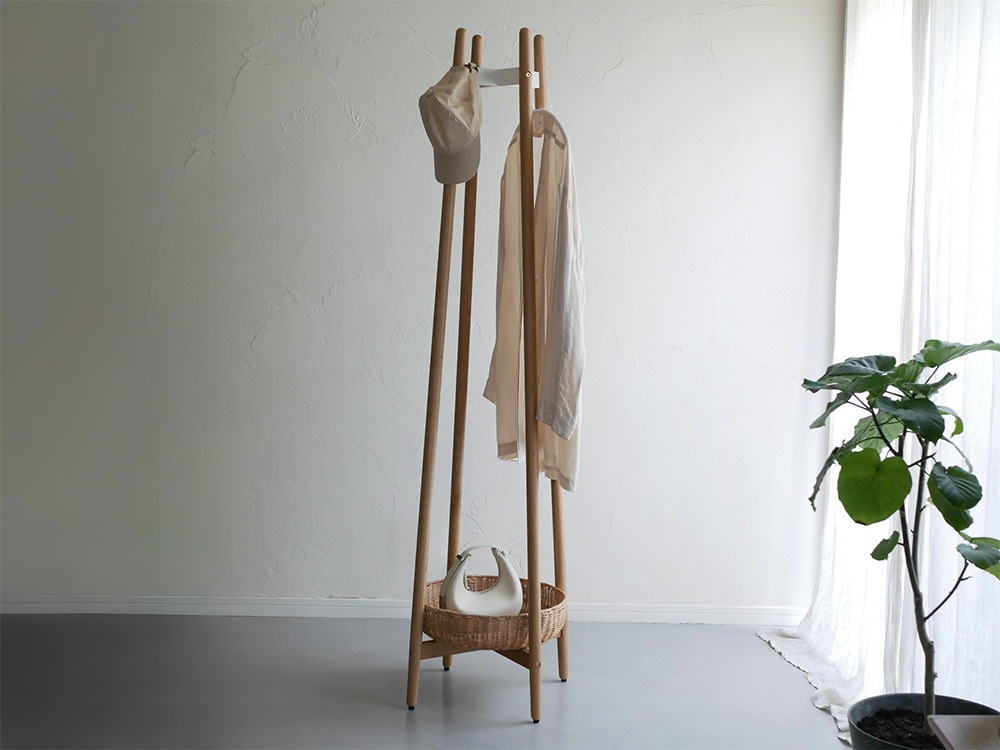 【NOWHERE LIKE HOME】ラタンバスケット付きコートハンガー ワイド(幅90) ホワイト