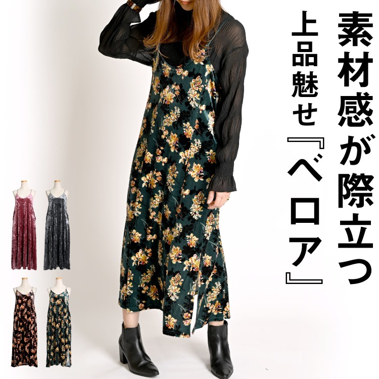 【期間限定10%OFF】素材感が際立つ。ベロアロングキャミソールワンピース
