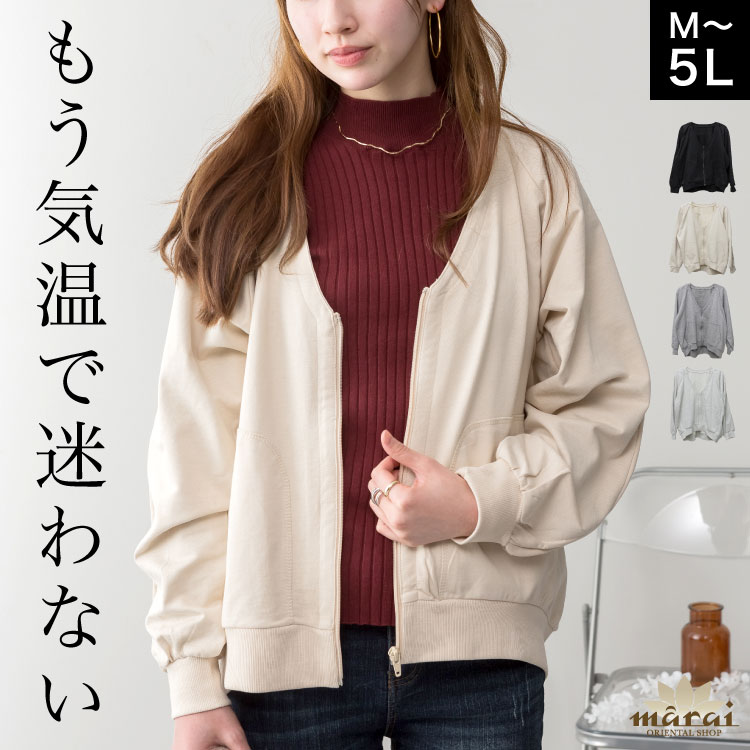 ブルゾン ジップアップ ミニ裏毛 Vネック レディース 長袖 ライトアウター 羽織り 春 秋 体型カバー シンプル 無地 大きいサ...