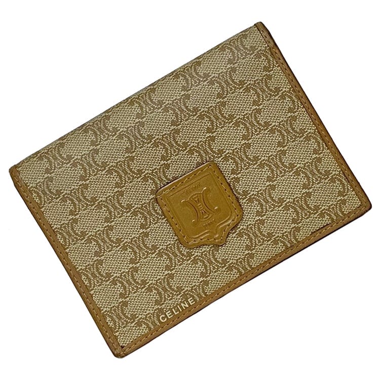 セリーヌ カードケース ec-23400 ベージュ マカダム 名刺入れ PVC レザー 中古 M08 CELINE 折りたたみ 定...