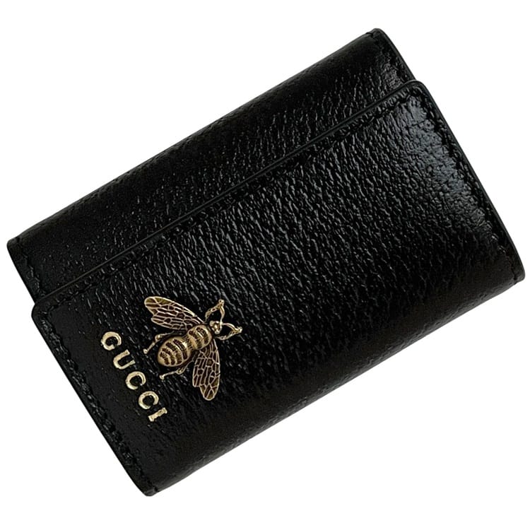 グッチ 6連 キーケース ブラック アニマリエ メタルビー 523683 2091 未使用 美品 レザー Sランク GUCCI 蜂...