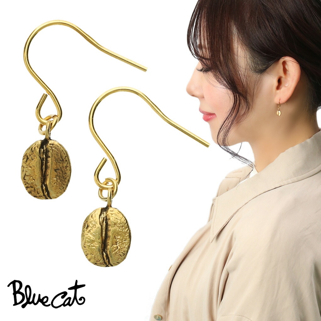 Blue Cat 揺れる コーヒー豆 ビーンズ ゴールド ピアス 2P 両耳用 シルバー レディースピアス 925 金 珈琲豆 珈...