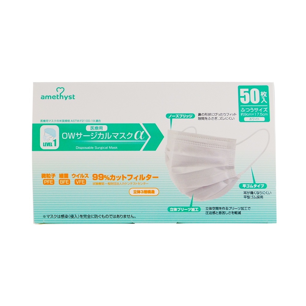 OWサージカルマスクαゴムタイプ50枚入 | 医療用 不織布マスク 不織布製(3層構造) 大衛 アメジスト