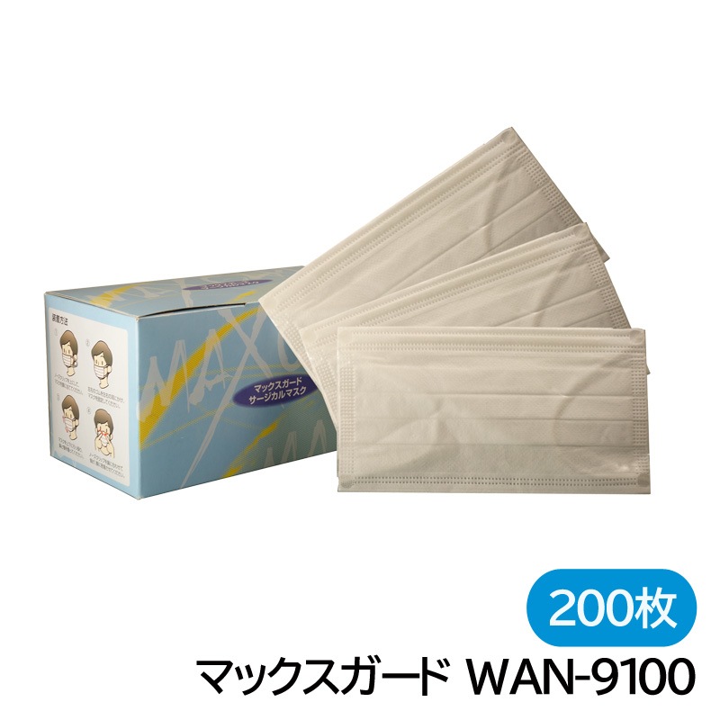 【送料無料】(日本メーカー製) マックスガード サージカルマスク WAN-9100 個装なしタイプ 200枚 (50枚入×4箱)【...