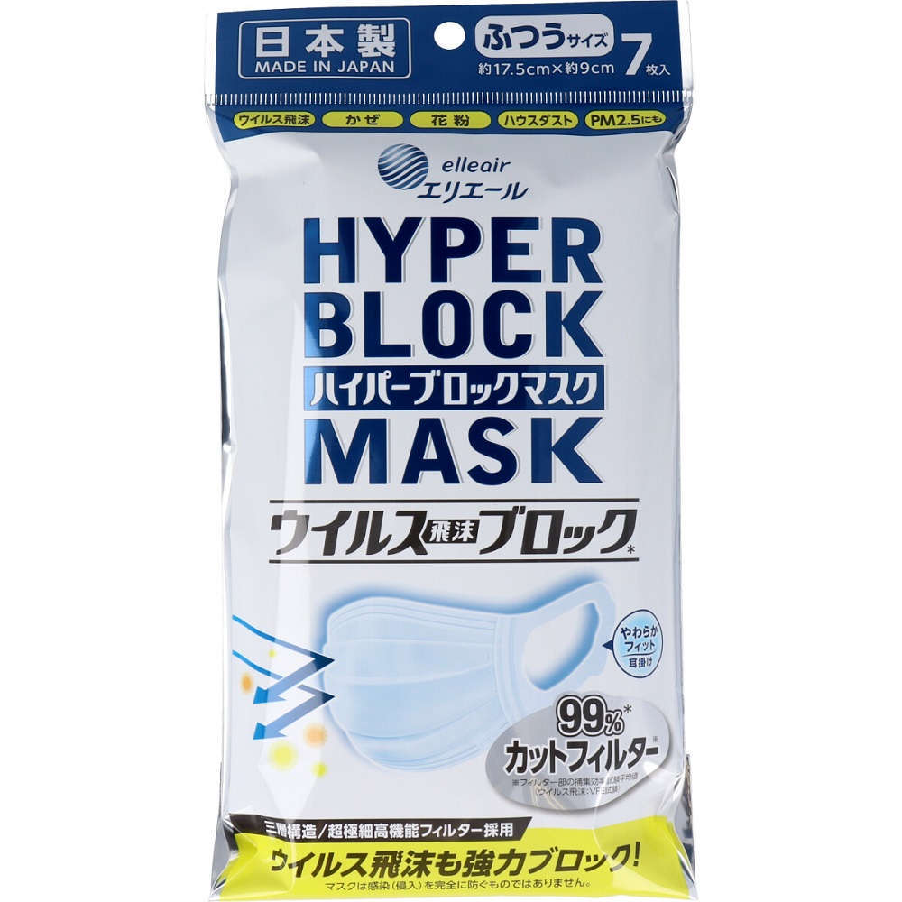 【不織布マスク】 エリエール ハイパーブロックマスク ウイルス飛沫ブロック ふつうサイズ 7枚入